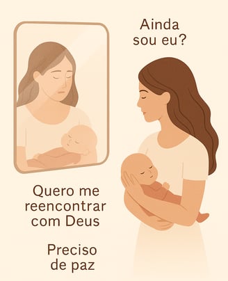 "Você se sente cansada, sobrecarregada ou invisível desde que o bebê chegou?" Descubra um caminho de acolhimento e fé para os seus dias mais difíceis no pós-parto.